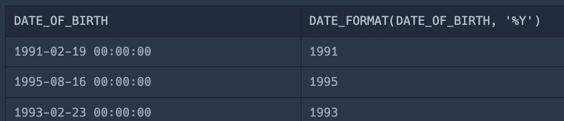 DATE_FORMAT(column_name, '%Y') 👉 연도만 출력