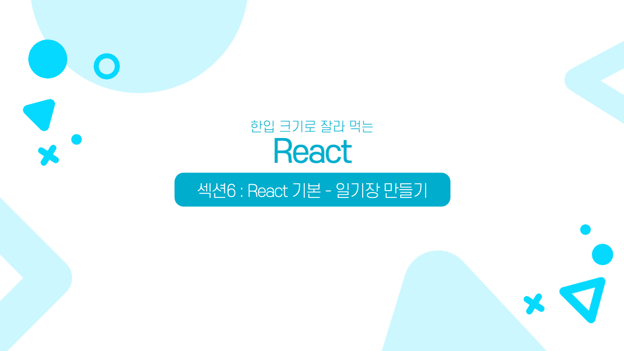 Udemy에서 진행하고 있는 리액트 챌린지에 참여하며 2주차 미션으로 "섹션 6 React 기본 - 일기장 만들어보기"을 수강한 내용을 정리합니다. 👍