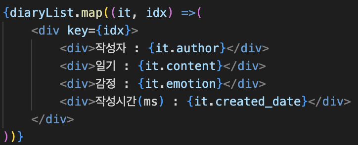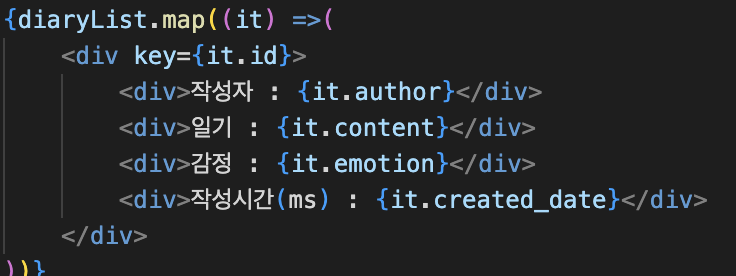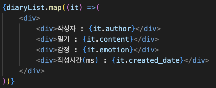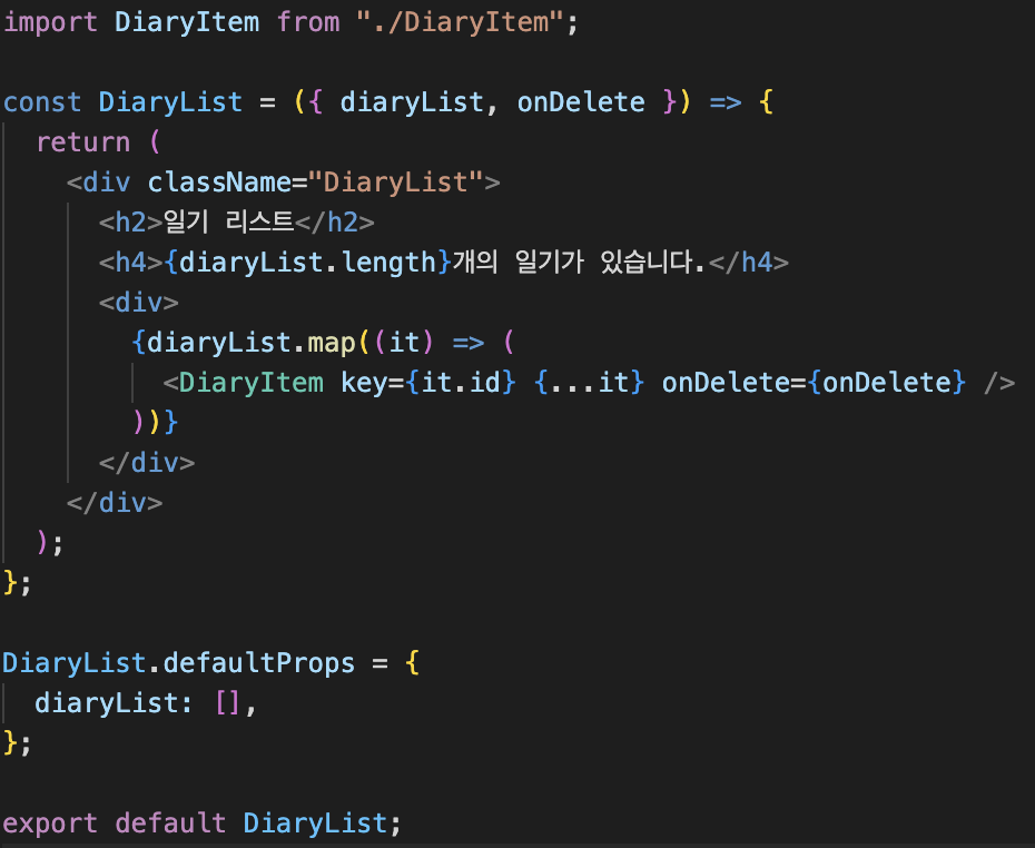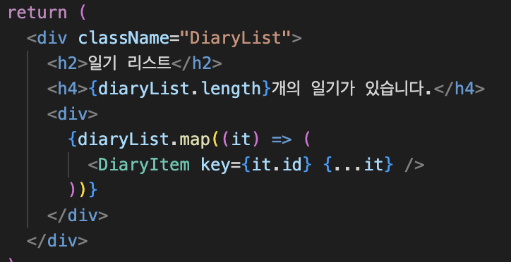 - 배열로 리스트 요소를 생성하는 부분에서 DiaryItem 컴포넌트를 생성하도록 수정