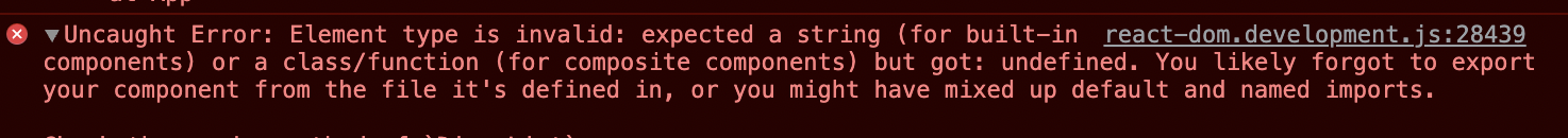 > Uncaught Error: Element type is invalid: expected a string (for built-in components) or a class/function (for composite components) but got: undefined. You likely forgot to export your component from the file it's defined in, or you might have mixed up default and named imports.