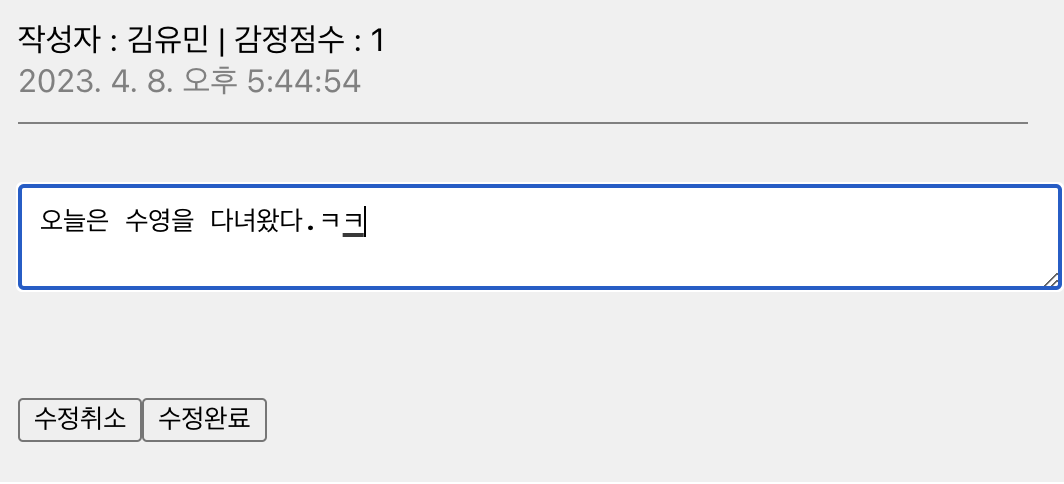 '수정하기' 버튼을 누르면 내용을 수정할 수 있는 폼이 나타나도록 처리하기