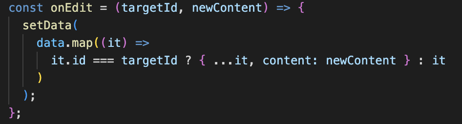 map 함수를 사용해서 targetId 와 일치하는 item의 content 변경하는 함수를 구현한다.