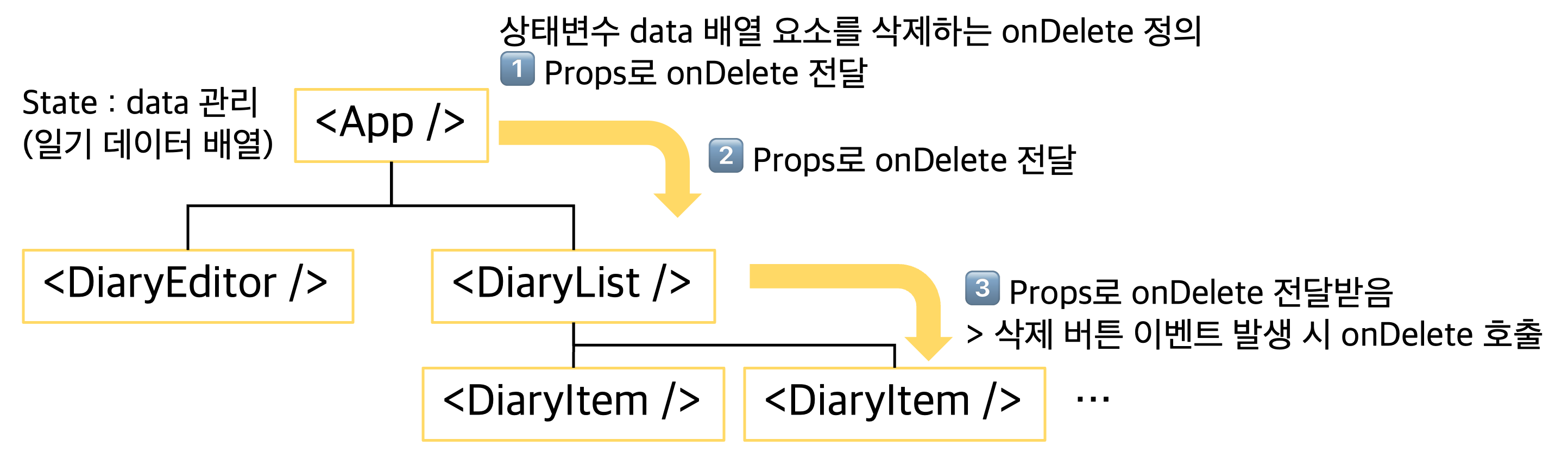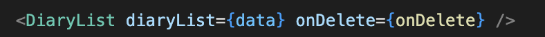 > 리스트 각 요소에서 onDelete를 호출해야하기 때문에 DiaryItem에 onDelete 함수 전달