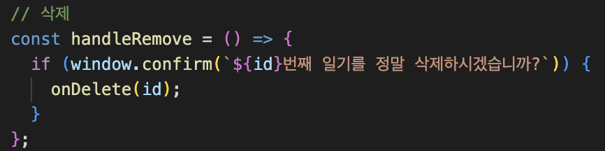 ⭐️ 삭제 전 alert로 삭제할건지 묻고 onDelete에 삭제할 요소의 id 전달