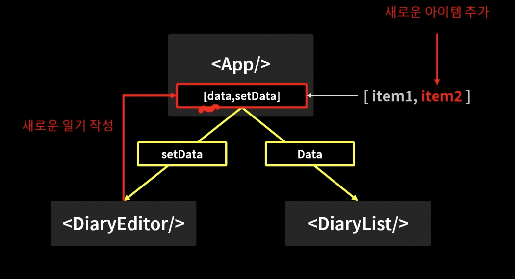 일기 데이터를 관리할 배열을 최상위 부모인 App 컴포넌트에서 State로 관리한다.