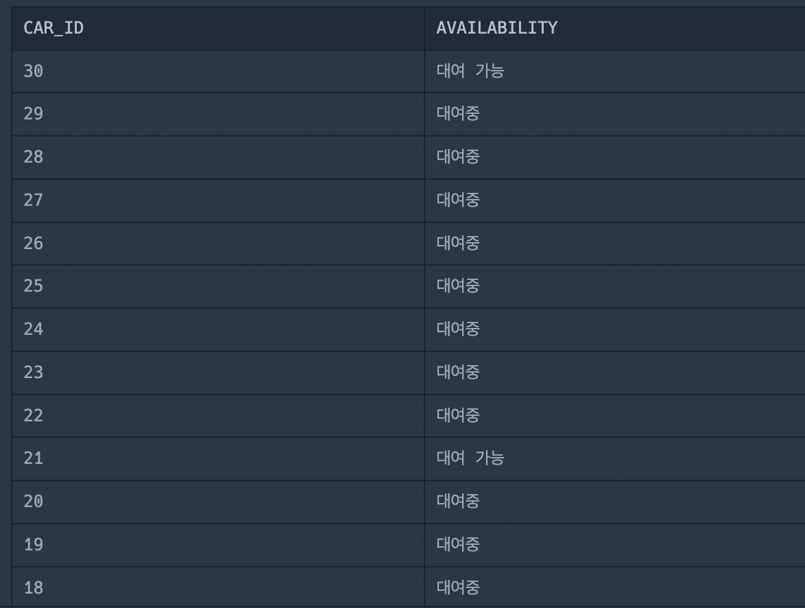 , '대여중', '대여 가능') AS AVAILABILITY