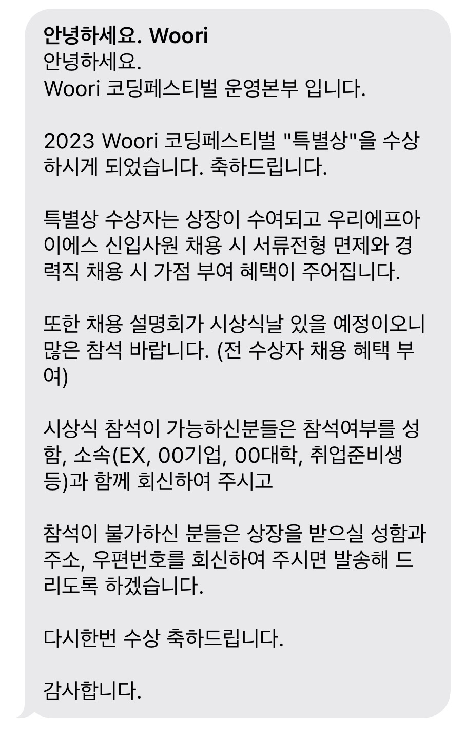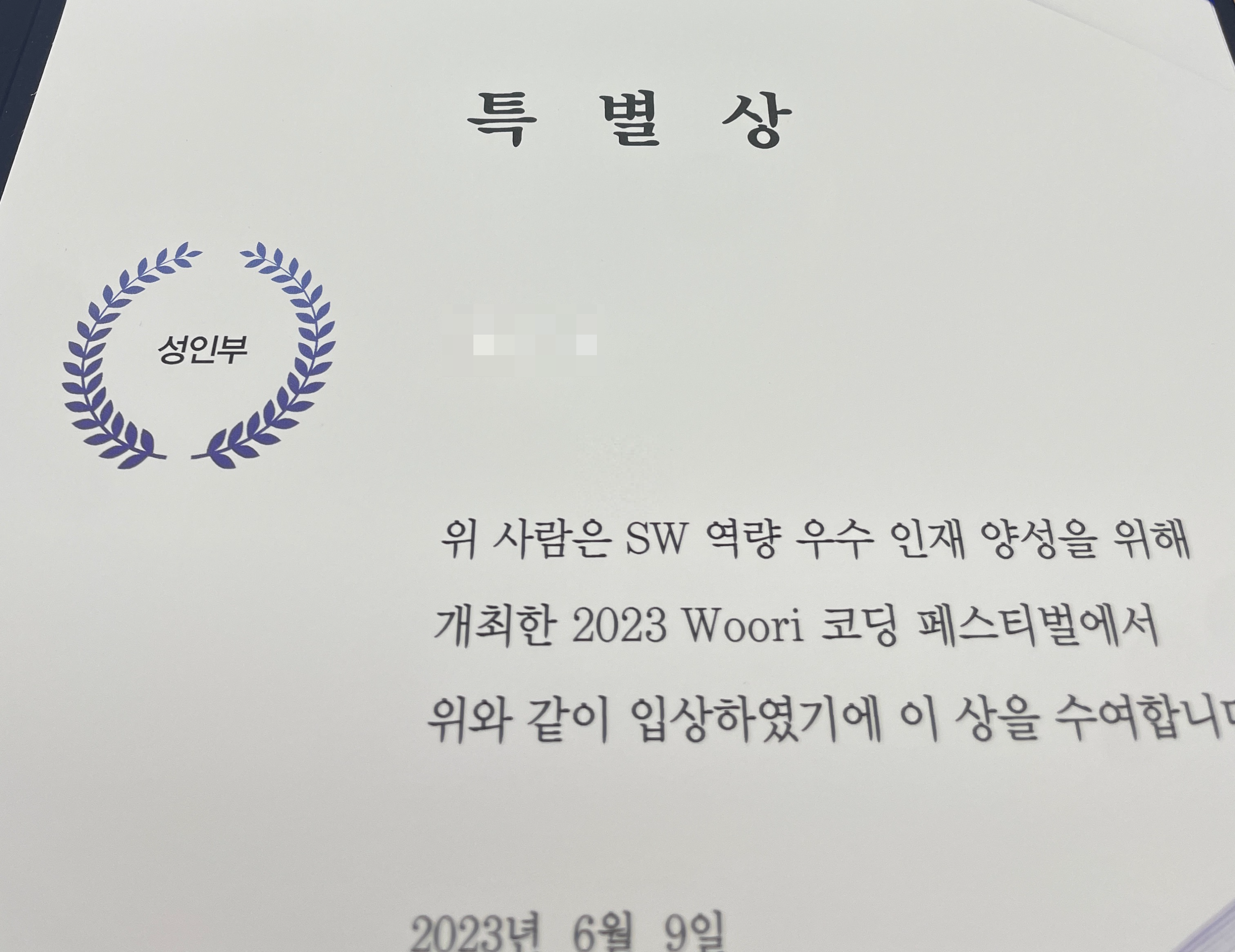 특별상은 가능성이 보이는 사람한테 주는 상이라고 설명하셨다.. 두근