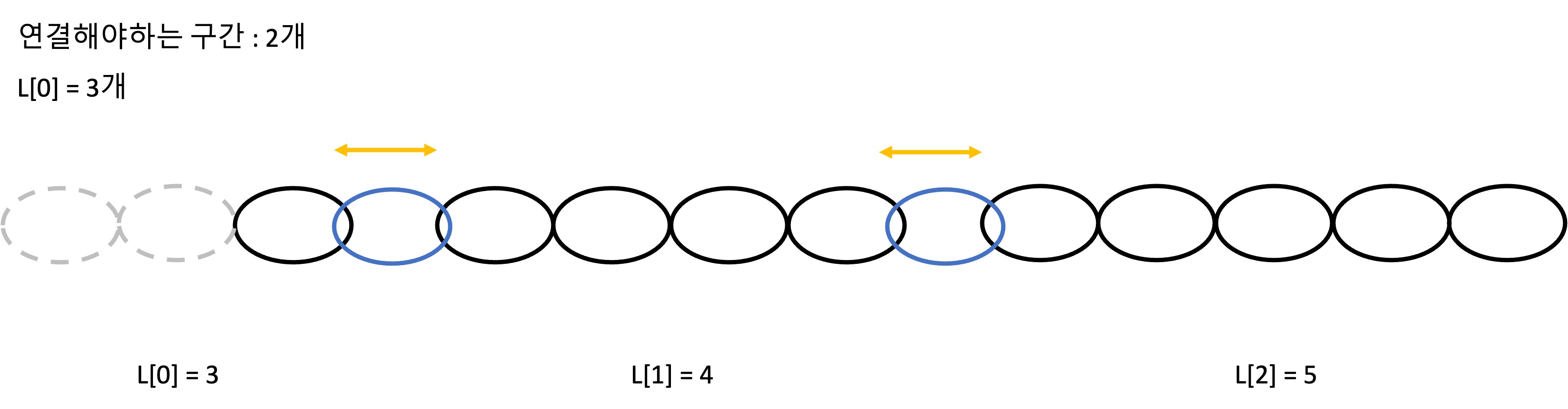가장 길이가 짧은 0번째 체인을 모두 사용하여 2개의 구간을 연결, 구간 갯수를 줄인다.