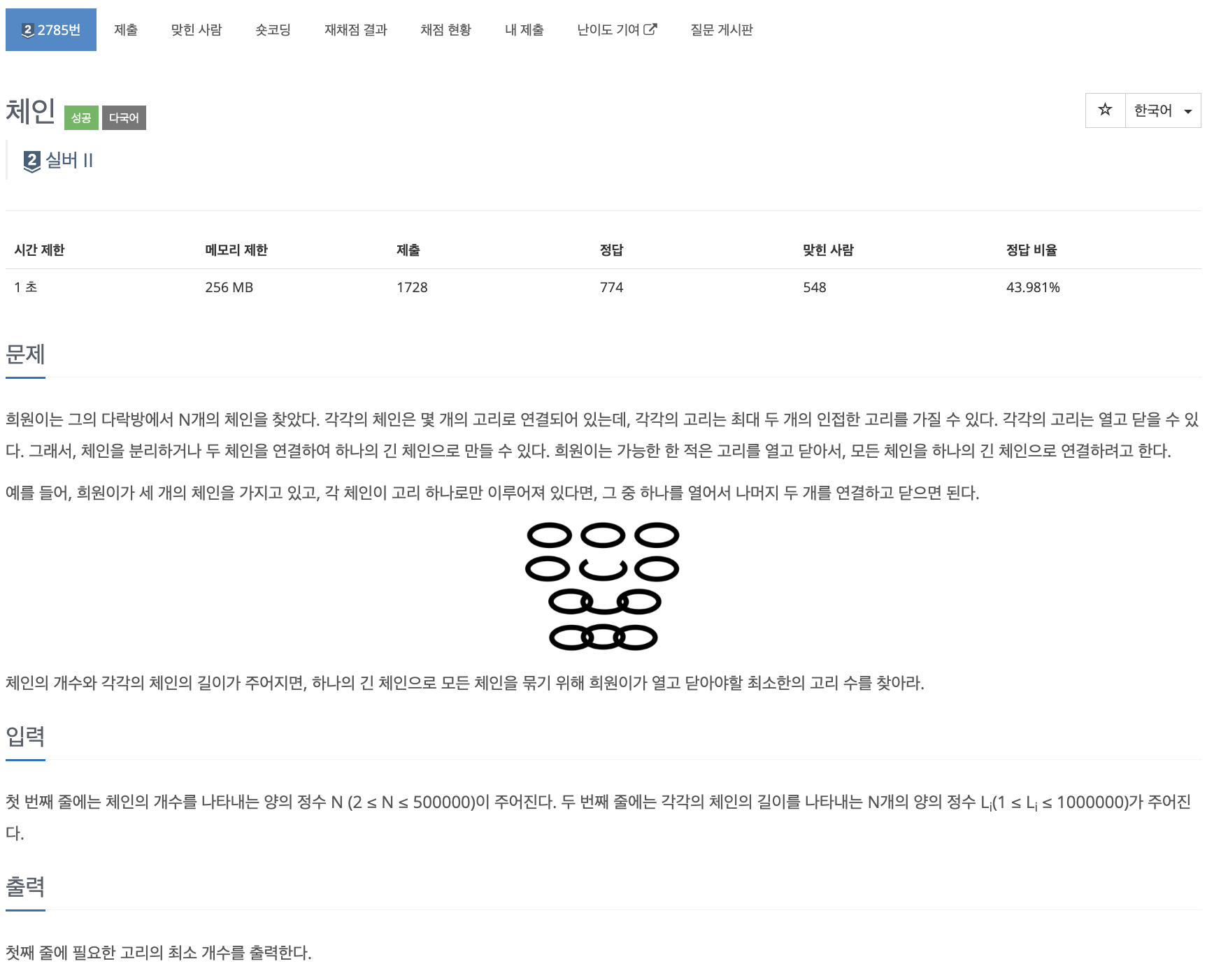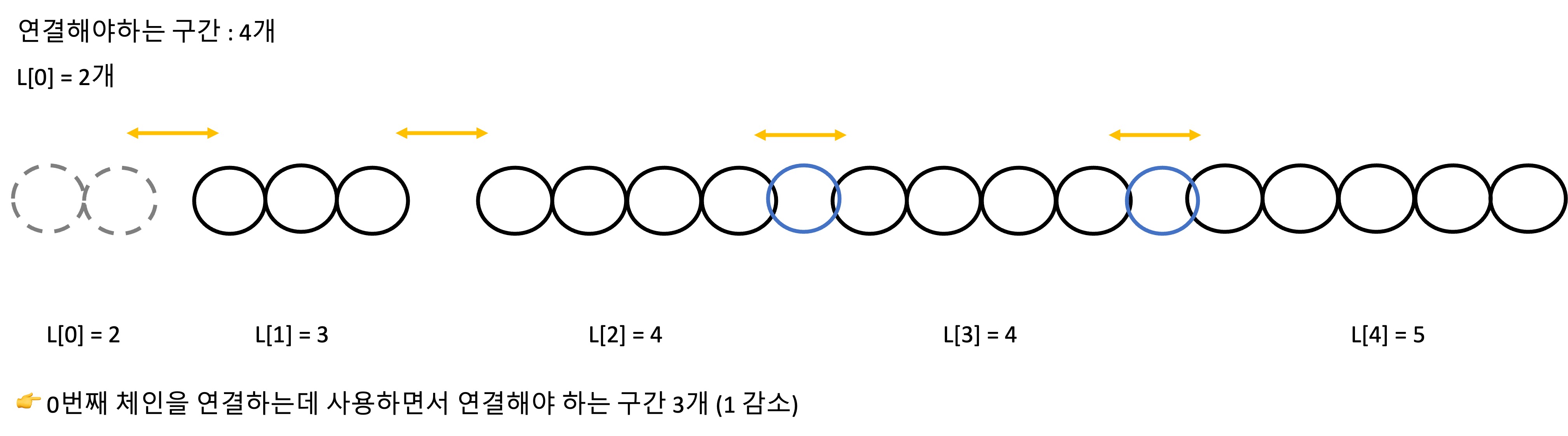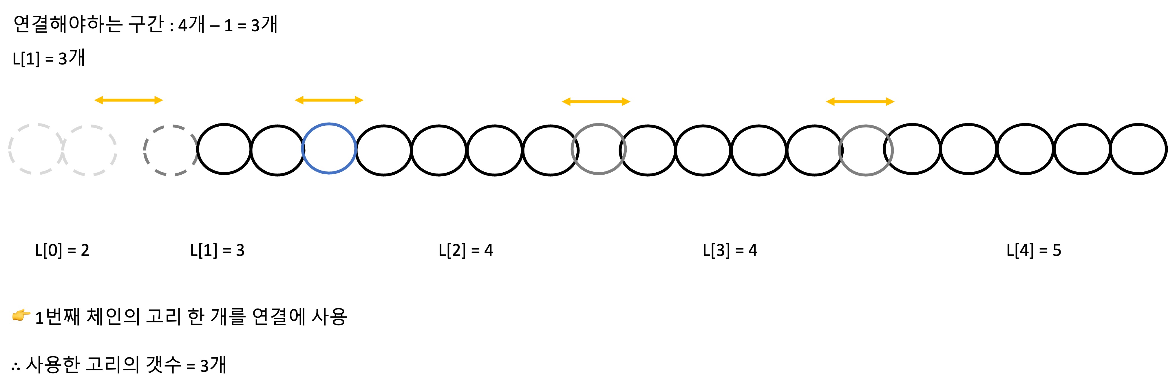 1. 한 체인의 고리 갯수가 구간의 갯수보다 많으면