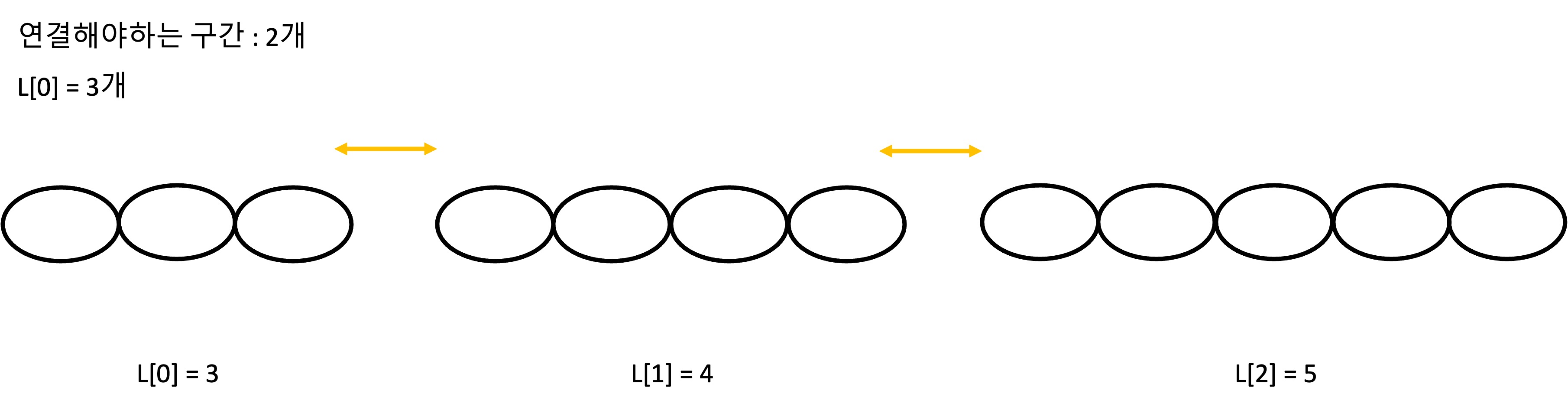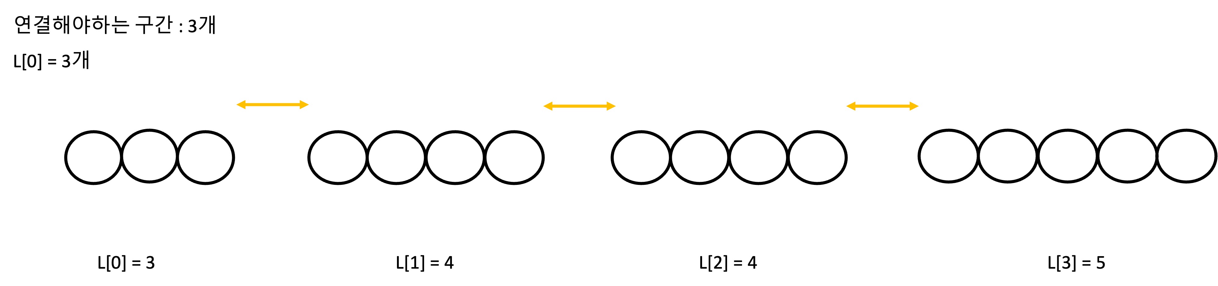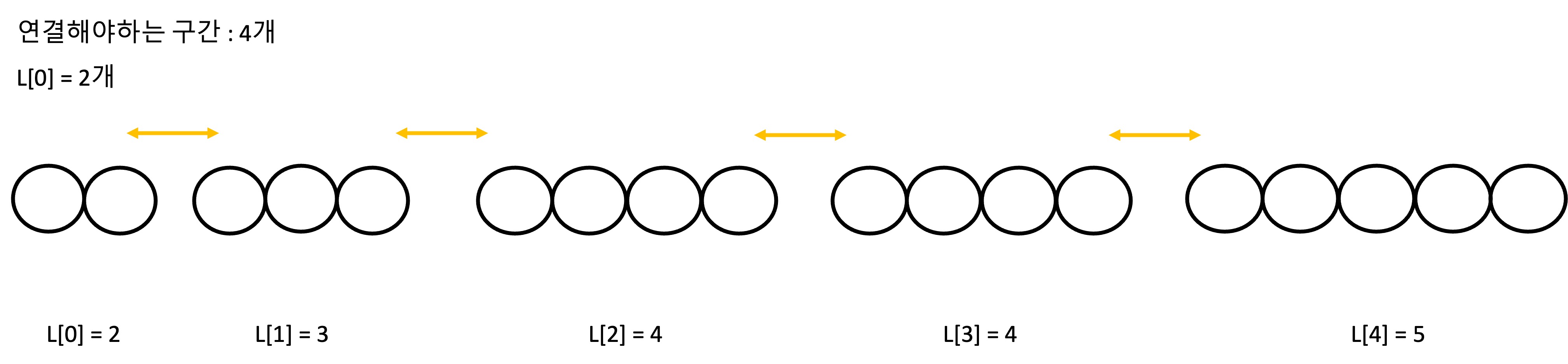 else: # 구간의 갯수가 l[i] 보다 많거나 작으면 > l[i] 체인 모두 연결하는데 사용
