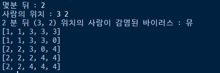 - 초기값 - 증식시간 0, 바이러스 초기 위치