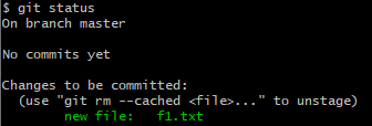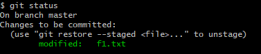git add f1.txt 를 실행한 후 git status를 해서 파일의 상태를 확인하면, Changes to be commited로 commit이 될 수 있는 상태로 전환된다.