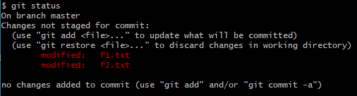 f1.txt와 f2.txt를 모두 수정한 상황에서 git status 실행