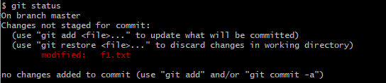 수정되었지만 로컬 저장소에 add 되지 않은 상태로, 버전관리 중인 파일을 수정했을 경우, 수정된 파일을 git add 하여 버전 관리 시스템에 add해서 버전관리를 해야한다.