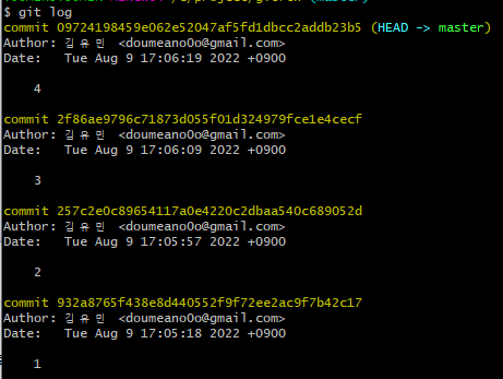 다시 "4" commit으로 돌아온 것을 확인할 수 있다.