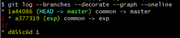 = master와 exp branch가 공통의 commit에서 수정했고, 공통된 부분을 수정한 경우