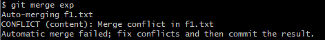 자동 병합에 실패했기 때문에 (Automatic merge failed), 사용자가 확인하여 충돌된 부분을 수정하고 commit 해야한다.
