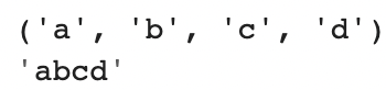 위는 받은 문자들(튜플형태)을 for문으로 언패킹하여 하나의 문자열로 만드는 함수를 호출하는 소스이다.