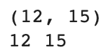 - (12, 15)와 같이 튜플 형태로 대입해도 튜플이 생성된다. (괄호를 생략해도 무방하다)