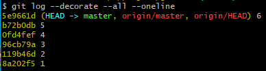 현재 checkout 된 브랜치의 head와 origin의 head가 동일한 것을 볼 수 있다.