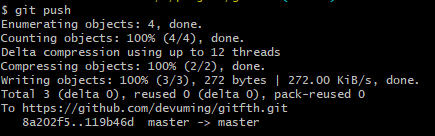 > 한번 수행 후에는 git push 명령어만 수행해도 master branch에 업로드 되는 것을 확인할 수 있다.