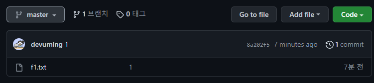 > 한번 수행 후에는 git push 명령어만 수행해도 master branch에 업로드 되는 것을 확인할 수 있다.