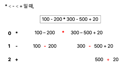 - 같은 연산자끼리는 앞에 있는 것의 우선순위가 더 높습니다.