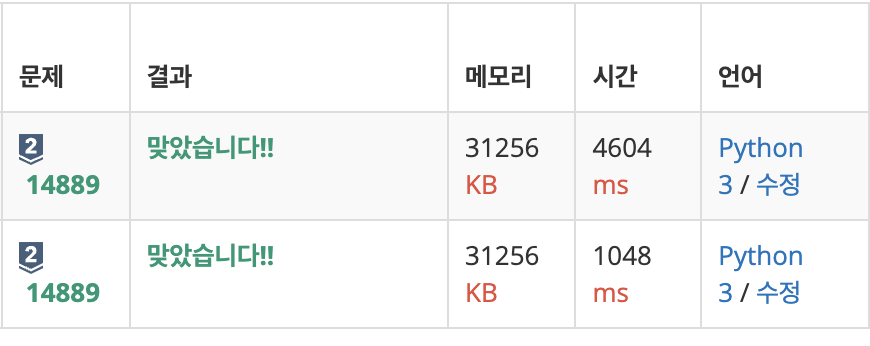 사실 A팀에 추가하기 위해 a_team 배열에 추가 삭제하는 append(), pop() 연산 자체는 둘다 O(1) 복잡도이며 visited 여부를 기록하기 위해서 visited[i] 로 원소에 접근하는 것도 O(1) 이라서 괜찮지만,