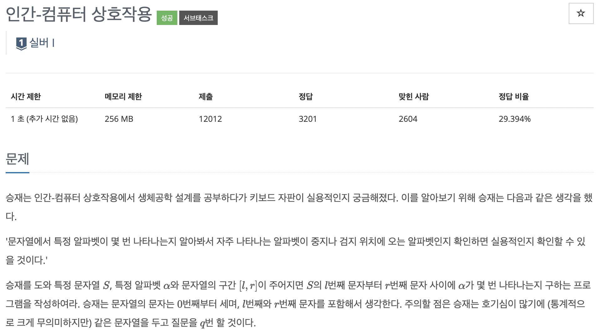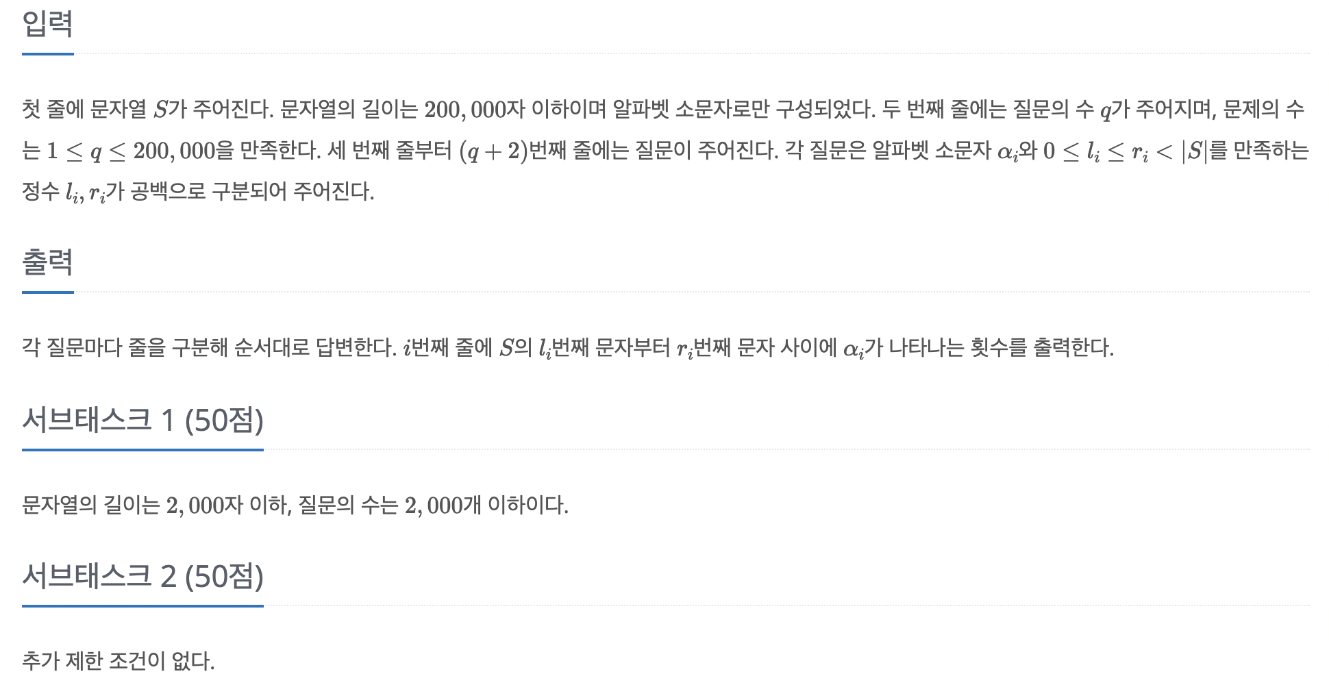 그러면 문자열 S의 4 - 7 구간에서의 문자 'i'의 갯수는