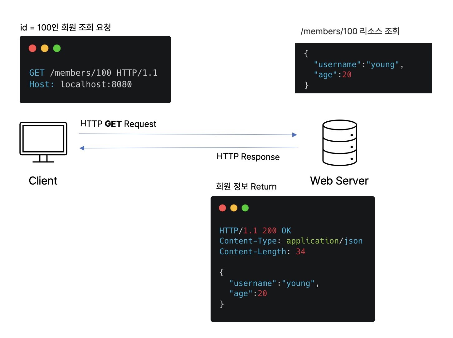 - Client(Web Browser)와 Server (Web Server)사이 HTTP 메세지 교환